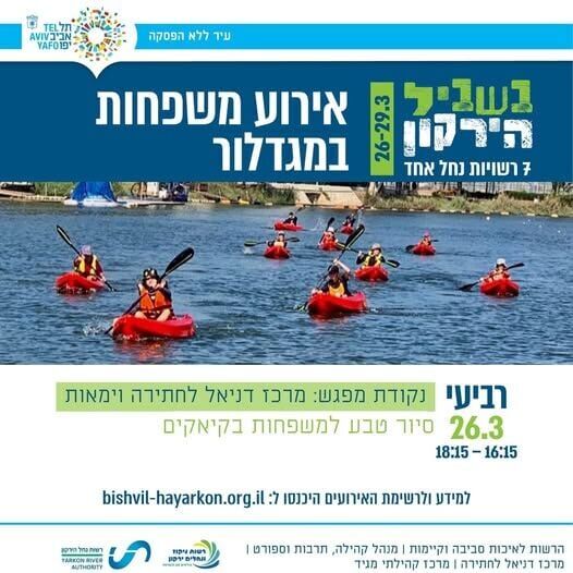 אירוע משפחות חגיגי בשפך הירקון בתל אביב עם סיור טבע על קיאקים - רביעי 26/3