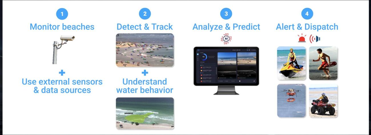 הדמיות לפעילות המערכות אשר מאפשרות את ניטור החופים, כמות האנשים הנמצאים בחוף, התראה לכוחות ההצלה ועוד