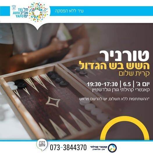קאנטרי קהילתי גורן גולדשטיין מזמין את הציבור להשתתף בטורניר שש בש ולהתמודד על התואר "אלוף.ת השש בש של קרית שלום".