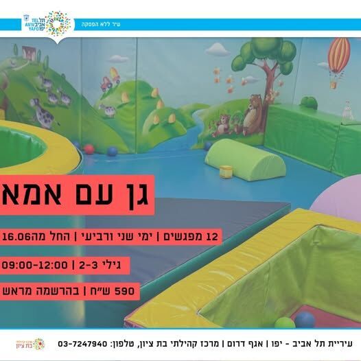 פרויקט "גן עם אמא" במרכז קהילתי בת ציון בתל אביב יוצא לדרך החל מה-16.06: 12 מפגשים לגילאי 2-3 בימי שני ורביעי