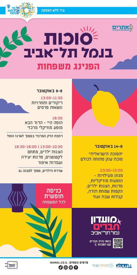 נמל תל אביב יקיים חגיגות סוכות לכל המשפחה במהלך חול המועד, עם מגוון רחב של פעילויות ומופעים ללא תשלום.