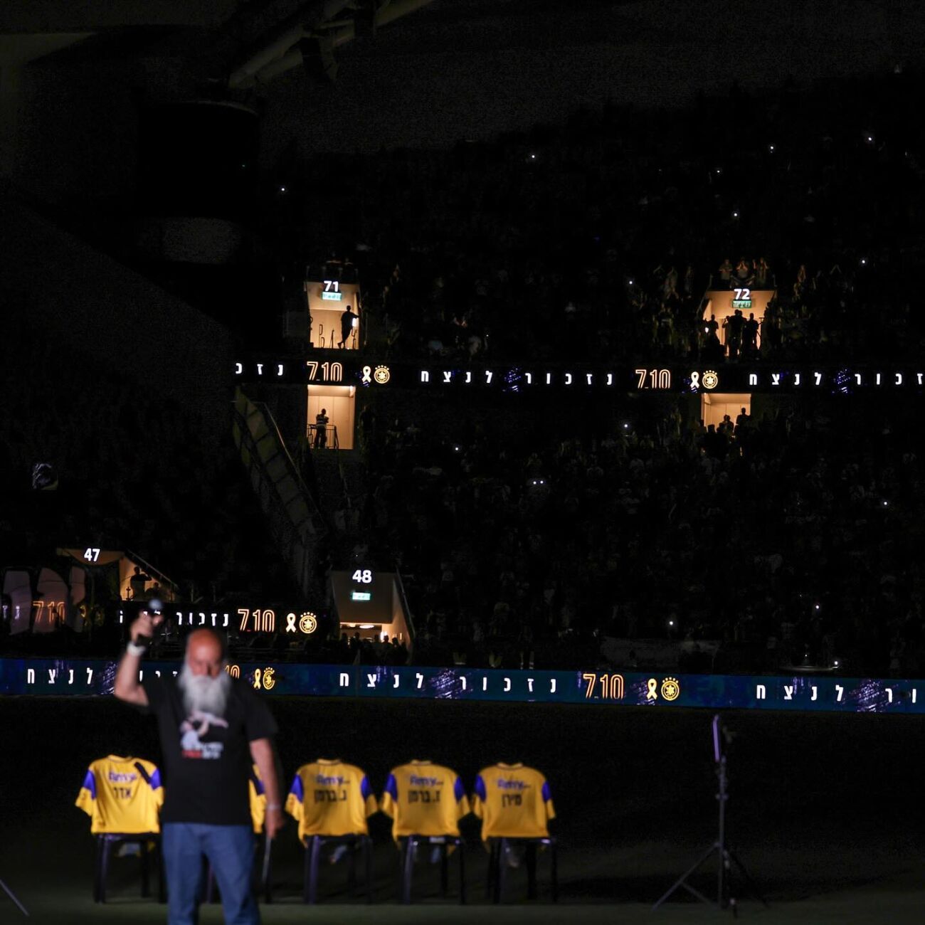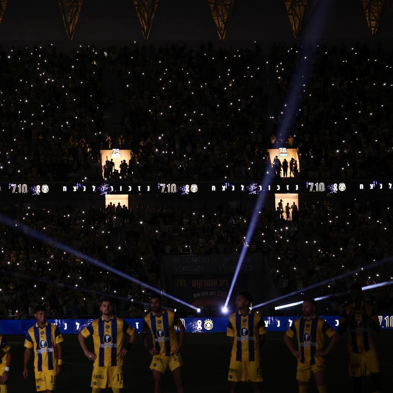 טקס מרגש נערך באצטדיון בלומפילד לפני שריקת הפתיחה במשחקה של מכבי תל אביב, לקראת יום השנה לאירועי ה-7 באוקטובר. במהלך הטקס, נשא דברים דני מירן, אביו של עמרי מירן, אוהד הקבוצה אשר נחטף ומוחזק בשבי החמאס בעזה.