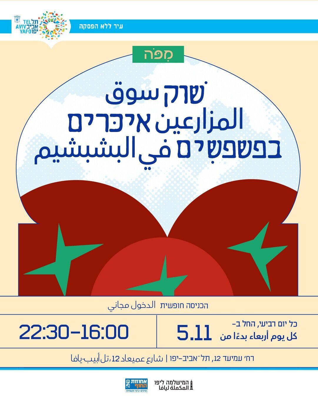 עיריית תל אביב-יפו משיקה לראשונה שוק איכרים קבוע בשוק הפשפשים ביפו, אשר יציע תוצרת ישראלית ויפואית, אירועי תרבות ושיתופי פעולה עם יקבים ושפים. השוק, הגדול והמגוון ביותר מסוגו בעיר, יפתח את שעריו ביום רביעי, 5 בנובמבר, ויפעל מדי שבוע משעות אחר הצהריים ועד הלילה.