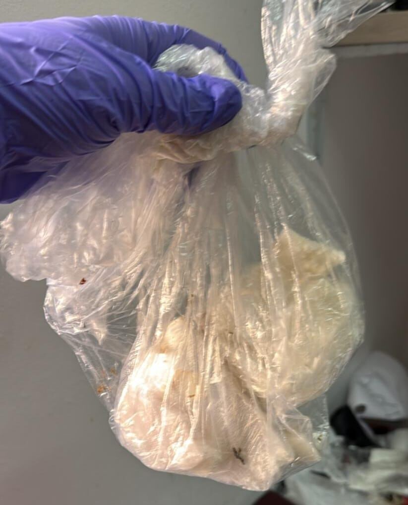 בתוך הדירה הבחינו הבלשים בחשוד, אשר רץ ומשליך דבר מה מידו. במהלך החיפוש בדירה נתפסו חצי ק"ג סמים מסוגים שונים ושקית, אותה השליך החשוד ובה כ-250 גרם קוקאין שהיו מחולקים למנות.