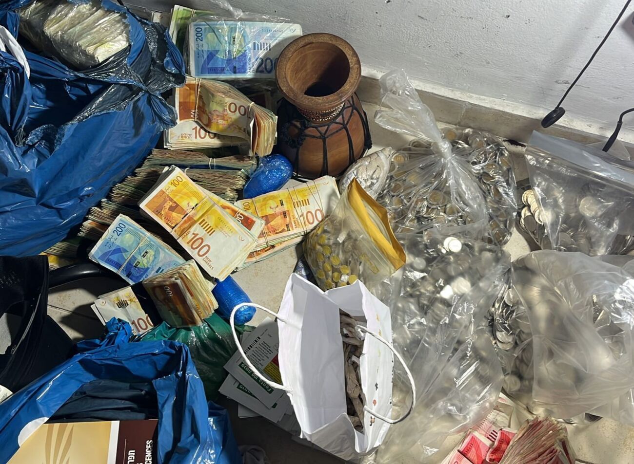 בהמשך החיפוש בדירה מצאו השוטרים במקומות שונים סכום כסף במזומן הכולל 1,300,000 שקל (מיליון שלוש מאות אלף שקלים).