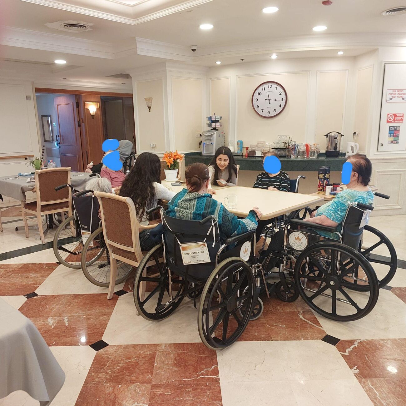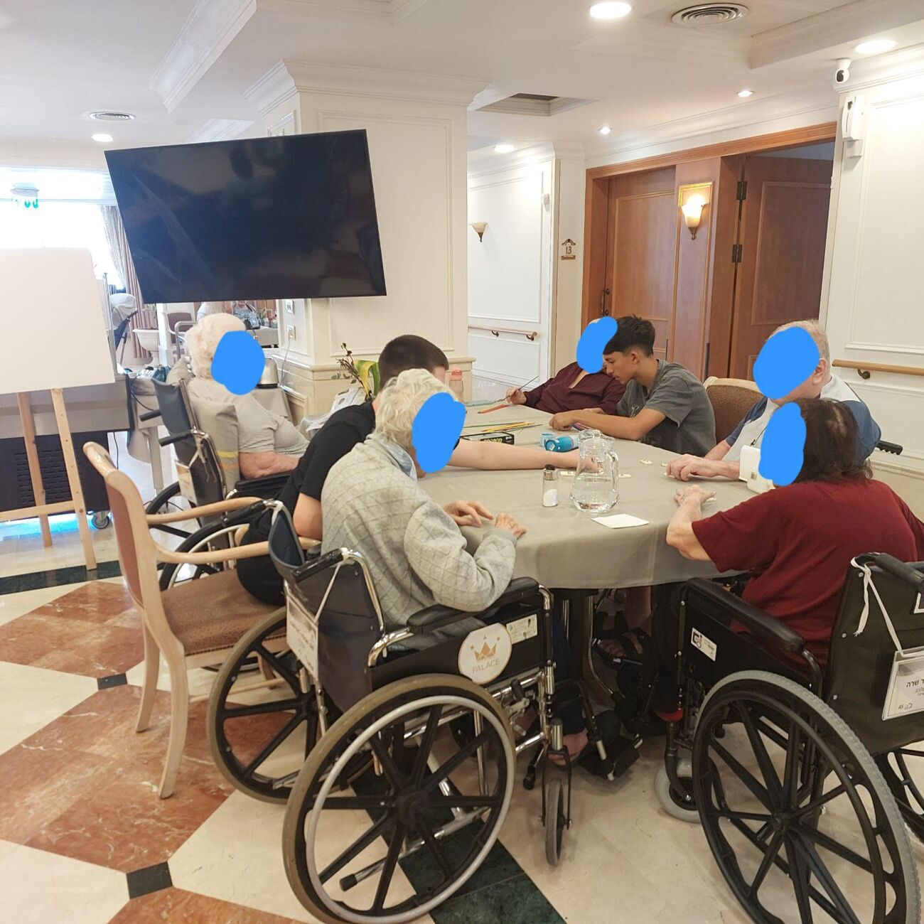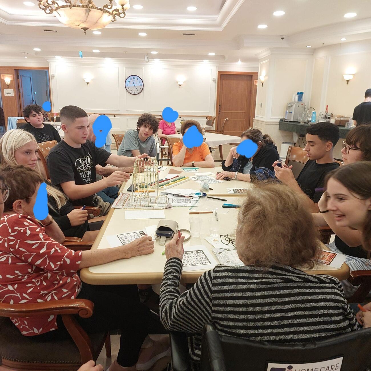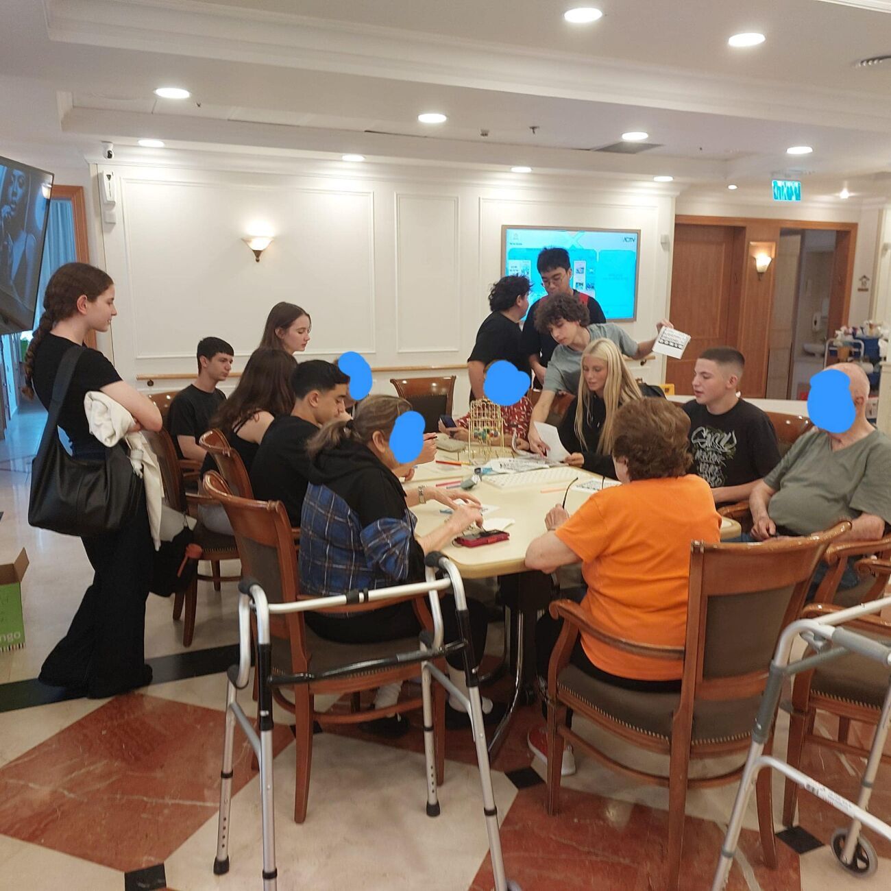 במהלך הביקור בארבע מחלקות סיעודיות שונות, פגשו התלמידים את דיירי המקום ושיחקו עמם במשחקי חברה מגוונים, ביניהם דמקה, דוקים, בינגו, טאקי ודומינו. על פי הגורמים המעורבים, נוצר קשר כמעט טבעי בין התלמידים למבוגרים, במהלכו התעניינו הצעירים בחייהם של מארחיהם ושיתפו גם בסיפוריהם האישיים. התלמידים הביעו תחושת סיפוק על כך שהצליחו להפיג את בדידותם של הקשישים, ולו לשעה קלה.