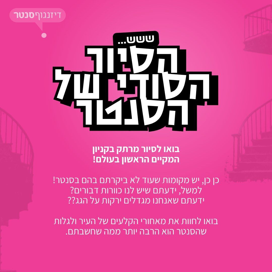 הסיור הסודי של הסנטר: סיור באזורים הפחות מוכרים של הסנטר, בו המשתתפים ילמדו על החיבור בין צרכנות לקיימות ויצפו בדבורים. הסיור יתקיים ביום ראשון, 23.11, בשעה 17:00. להרשמה ניתן ללחוץ כאן.
