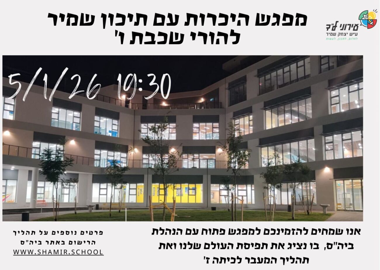 תיכון שמיר בתל אביב הודיע על פתיחת עונת הרישום לשנת הלימודים הבאה. במסגרת ההיערכות, יקיים בית הספר סדרת ערבי חשיפה למסלולים השונים המוצעים לתלמידים.