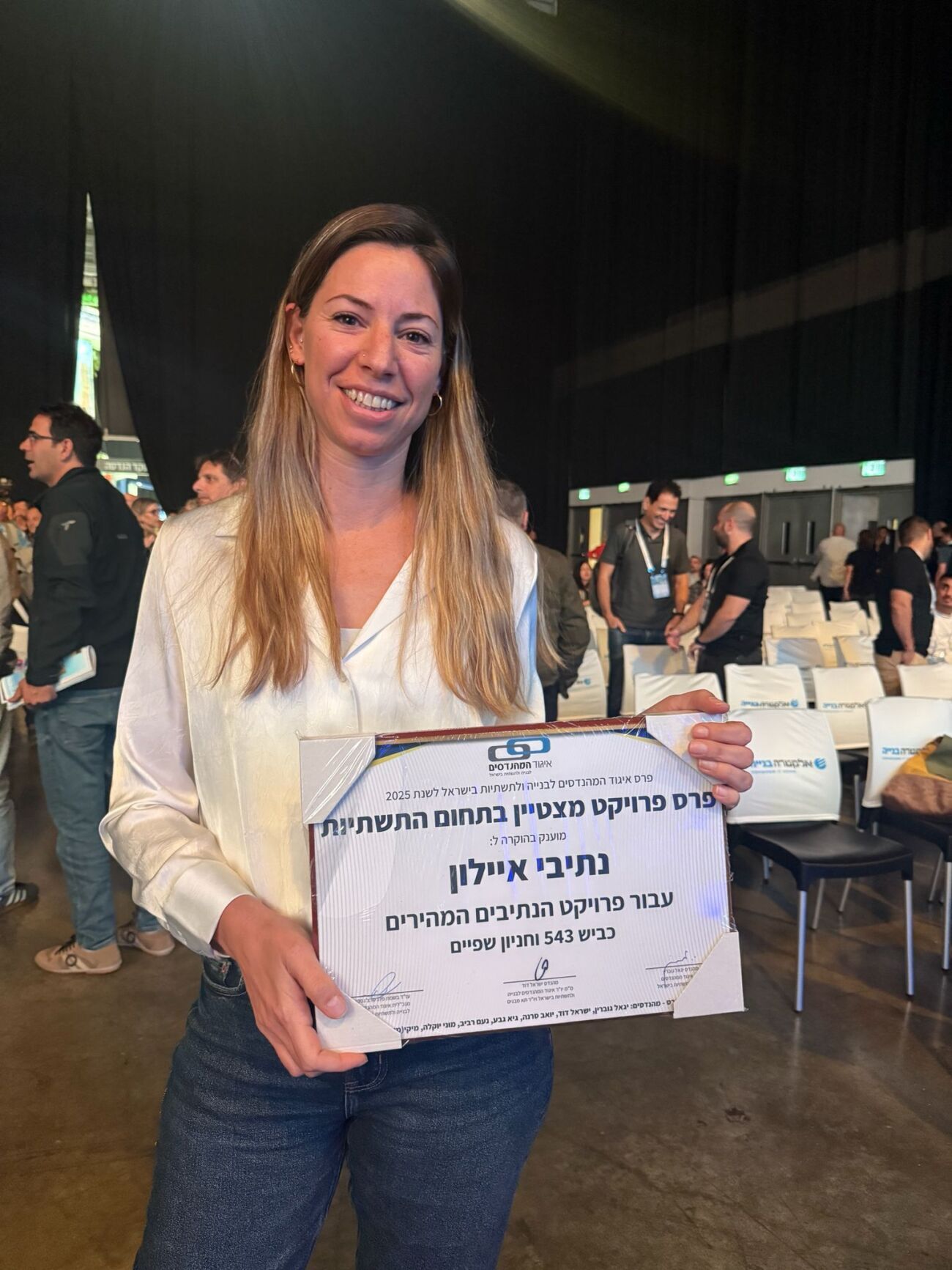 חברת נתיבי איילון זכתה בפרס פרויקט מצטיין בתחום תשתיות תנועה לשנת 2025 עבור פרויקט הנתיבים המהירים וחניון שפיים