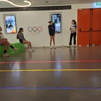 התלמידים יצאו בהליכה רגלית מחטיבת הביניים ועד לאיצטדיון הדר יוסף, שם קיימו סיור בחוויה האולימפית. במהלך הסיור, התרשמו התלמידים מההיסטוריה של המשחקים האולימפיים ושאבו השראה מספורטאי וספורטאיות הנבחרות הישראליות שהשתתפו במשחקים לאורך השנים.