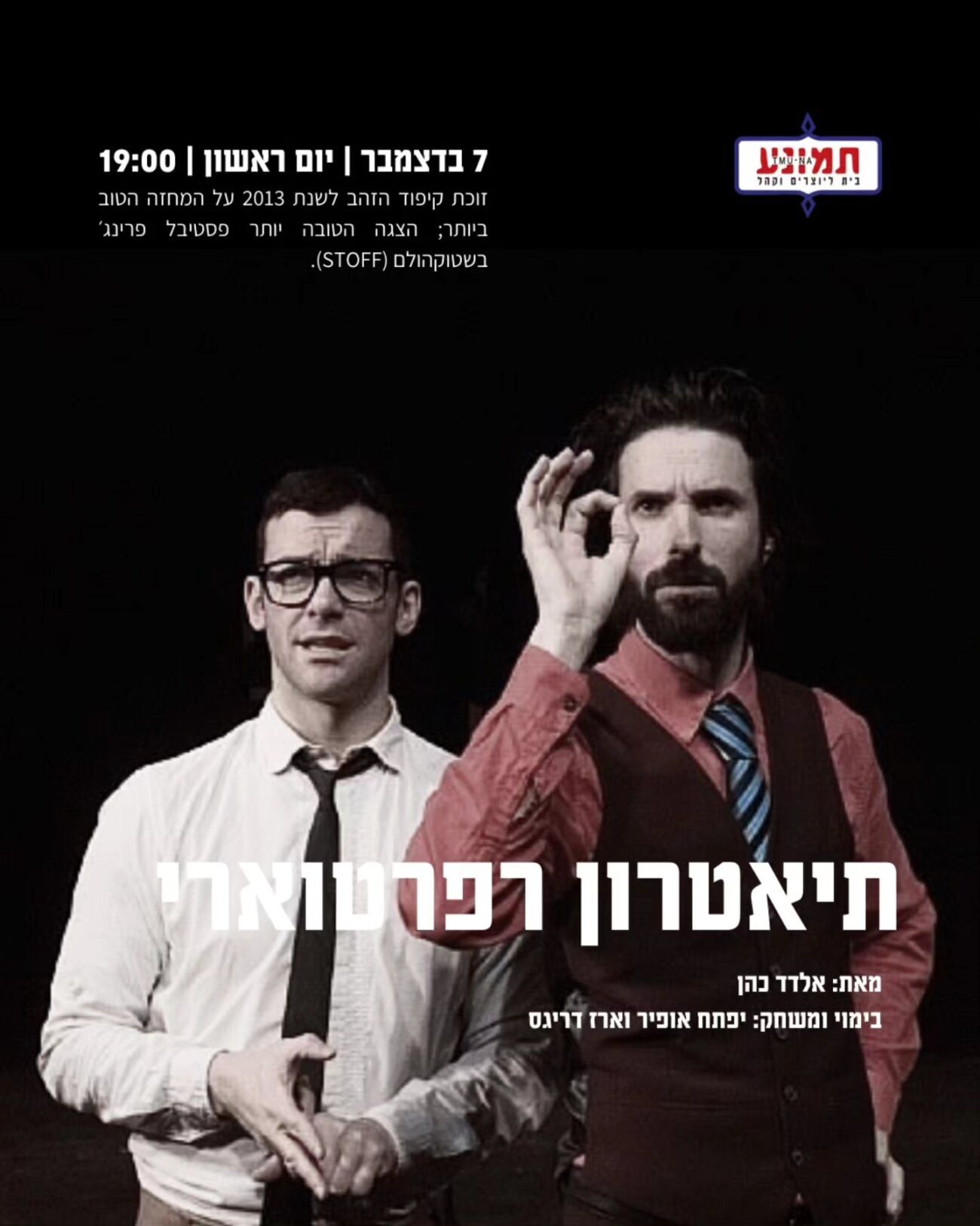 השבוע ייפתח בשעה 19:00 עם ההצגה "תיאטרון רפרטוארי", קומדיה מקורית מאת אלדד כהן, בבימוי ומשחק של יפתח אופיר וארז דריגס.