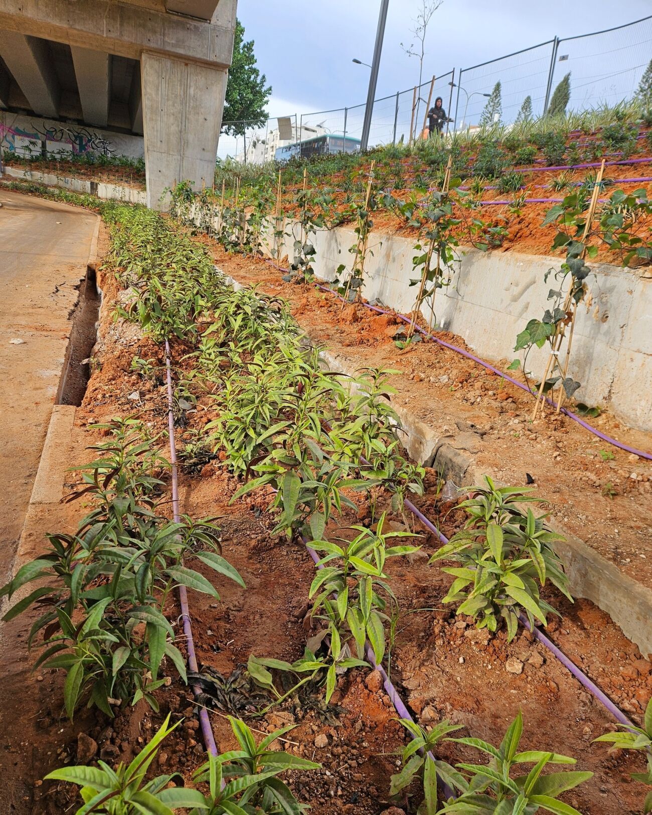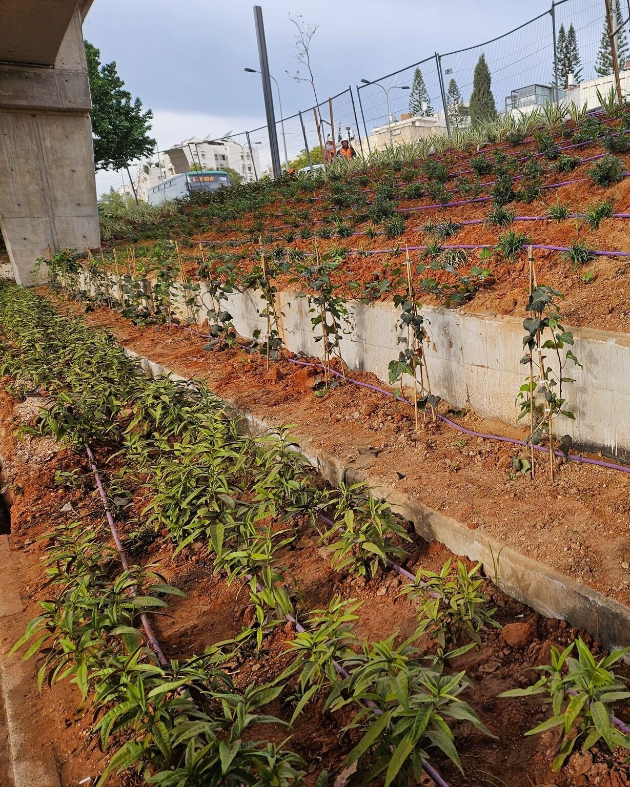 שיקום נופי בגני יהושע: עם סיום עבודות הרכבת הקלה, נת"ע מבצעת נטיעות ושתילות להחזרת הטבע לשטח, כולל מתחת לגשר העתידי בצומת פנחס רוזן-מבצע קדש