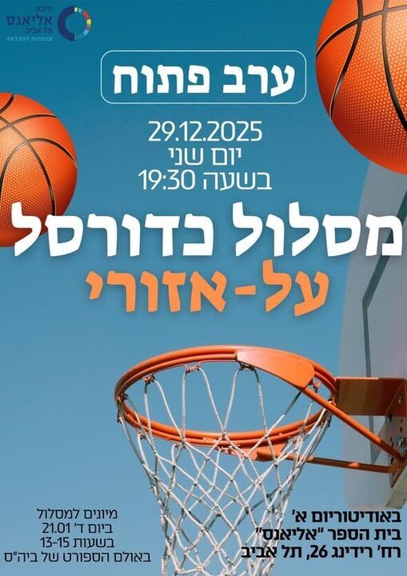 ערב פתוח להורים והיכרות עם מסלול הכדורסל יתקיים ביום שני, ה-29 בדצמבר 2025, בשעה 19:30. המפגש ייערך בבית הספר "אליאנס", ברחוב רידינג 26 באודיטוריום א'.