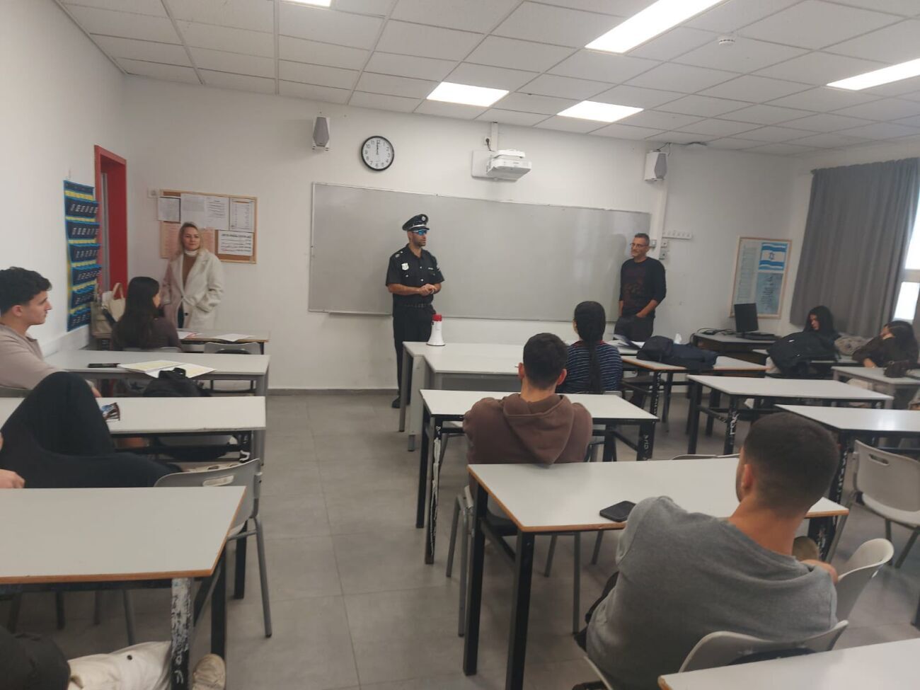 בהמשך היום, נכנס השחקן לכל כיתות החטיבה העליונה בבית הספר והסביר לתלמידים על החשיבות של התקנת לוחית רישוי, חבישת קסדה ושמירה על כללי רכיבה בטוחה.