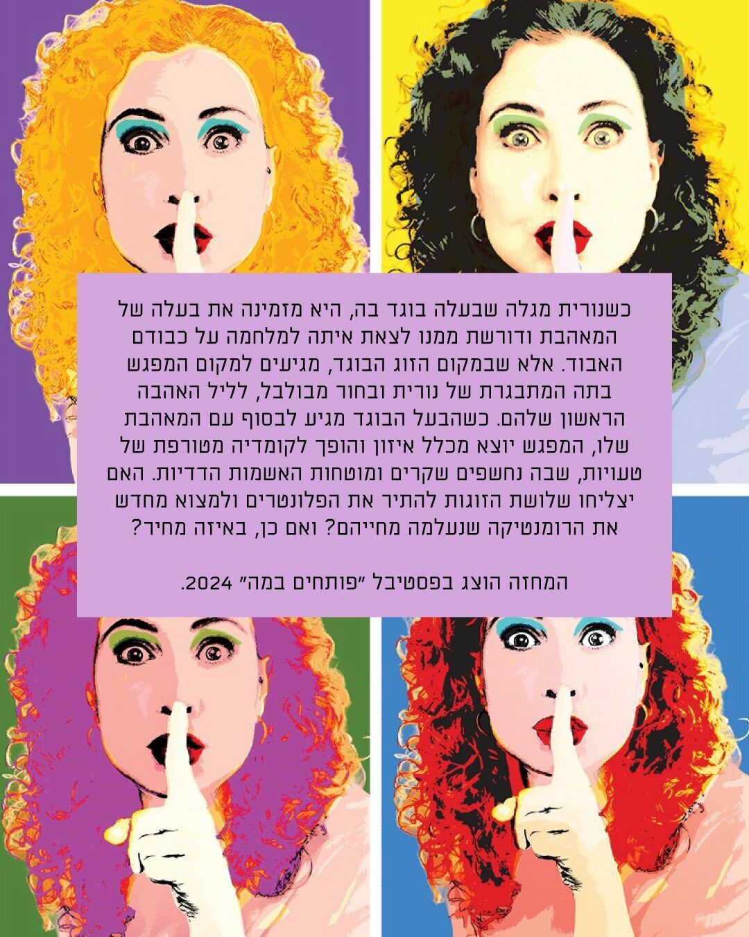 עלילת המחזה מתמקדת בנורית, אשר מגלה כי בעלה בוגד בה. בתגובה, היא מחליטה להזמין את בעלה של המאהבת ודורשת ממנו לצאת איתה למלחמה על כבודם האבוד. העניינים מסתבכים כאשר במקום הזוג הבוגד, מגיעים למקום המפגש בתה המתבגרת של נורית ובחור מבולבל, לליל האהבה הראשון שלהם. כאשר הבעל הבוגד מגיע לבסוף עם המאהבת שלו, המפגש יוצא מכלל איזון והופך לקומדיה מטורפת של טעויות, בה נחשפים שקרים ומוטחות האשמות הדדיות. השאלה המרכזית היא האם יצליחו שלושת הזוגות להתיר את הפלונטרים ולמצוא מחדש את הרומנטיקה שנעלמה מחייהם.