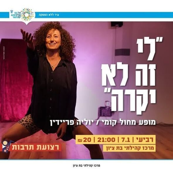 מרכז קהילתי בת ציון בתל אביב-יפו מזמין את הקהל הרחב למופע "לי זה לא יקרה" מאת יוליה פריידין, תושבת השכונה.