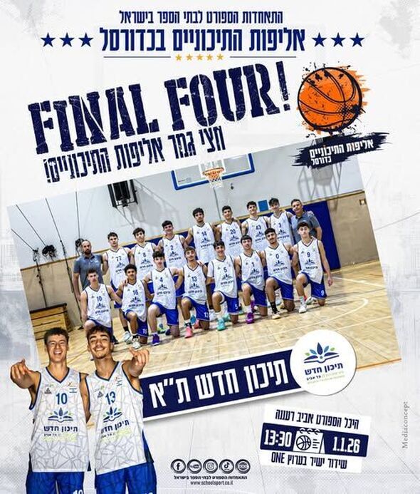 פיינל פור התלמידים בכדורסל לעונת 2025-26 יוצא לדרך היום (חמישי 1.1) נבחרת תיכון חדש תל אביב תתמודד נגד עין חרוד