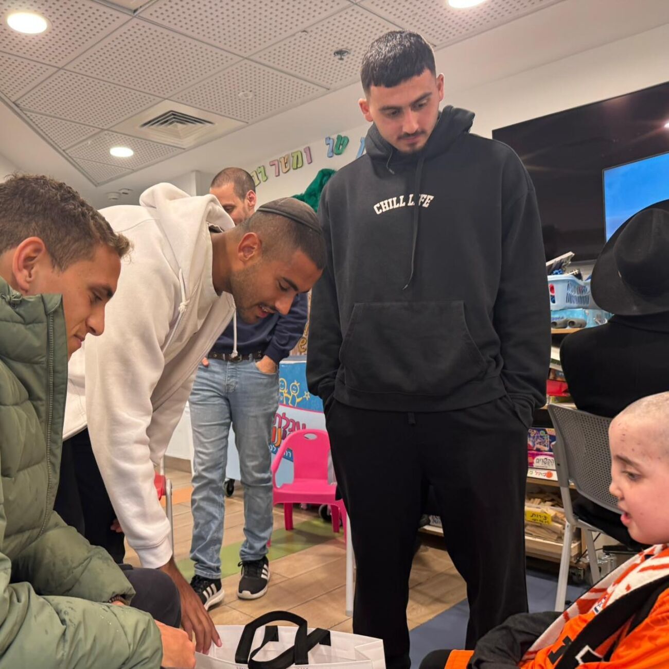 בשעות אחר הצהריים הגיעו שחקני מועדון הכדורגל בני יהודה תל אביב - ארד בר, מתן לוי ואורי אזולאי - לבית החולים ״דנה״ במרכז הרפואי איכילוב. השחקנים הגיעו על מנת לבקר את אוהד הקבוצה, בן, אשר עבר לאחרונה ניתוח מורכב.