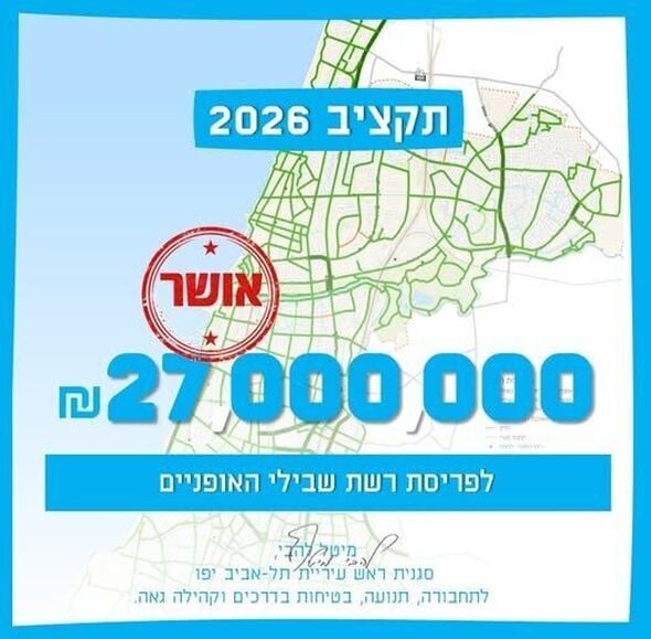 אושר תקציב של 27 מיליון ש"ח להרחבת רשת שבילי האופניים בתל אביב ולשיפור תשתיות הרכיבה בעיר