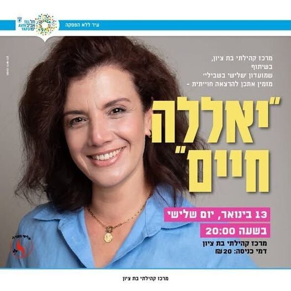 מרכז קהילתי בת ציון בתל אביב-יפו יקיים הרצאה חווייתית תחת הכותרת "יאללה חיים". ההרצאה תעסוק בחוסן רגשי, שמחה ומתן כלים מעשיים לניהול חיים בריאים ומלאי משמעות, בדגש על התמודדות וצמיחה גם לאחר משבר.