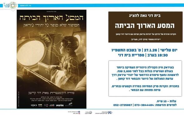 הקרנת הסרט הדוקומנטרי "המסע הארוך הביתה" על יהדות עיראק תתקיים במרכז קהילתי בית דני ב-27.1.26