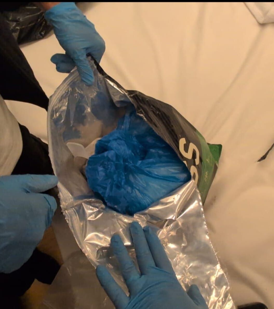עם כניסת השוטרים לחדר המלון בוצע חיפוש, במהלכו אותרה שקית במסווה של אבקת חלבון, שבתוכה, על פי החשד, הוסלק חומר החשוד כסם מסוג קטמין.