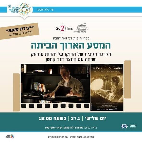 מרכז קהילתי בית דני בתל אביב-יפו מזמין את הציבור להקרנה חגיגית של הסרט הדוקומנטרי המרגש ועטור השבחים "המסע הארוך הביתה". הסרט, ששודר לראשונה בכאן 11, חושף את סיפורה הדרמטי של יהדות עיראק.