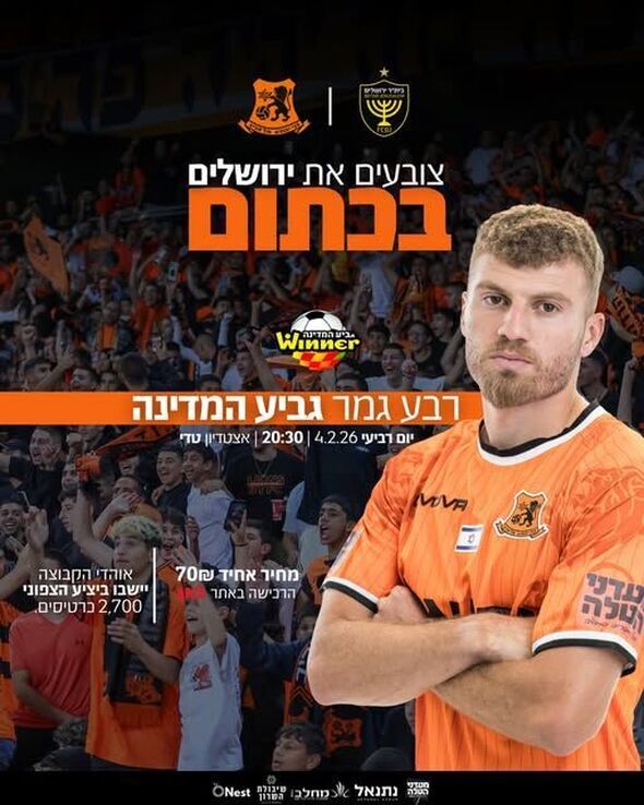 בני יהודה תל אביב תצא למשחק חוץ נגד בית"ר ירושלים ברבע גמר גביע המדינה באצטדיון טדי ביום רביעי ה-4.2.26