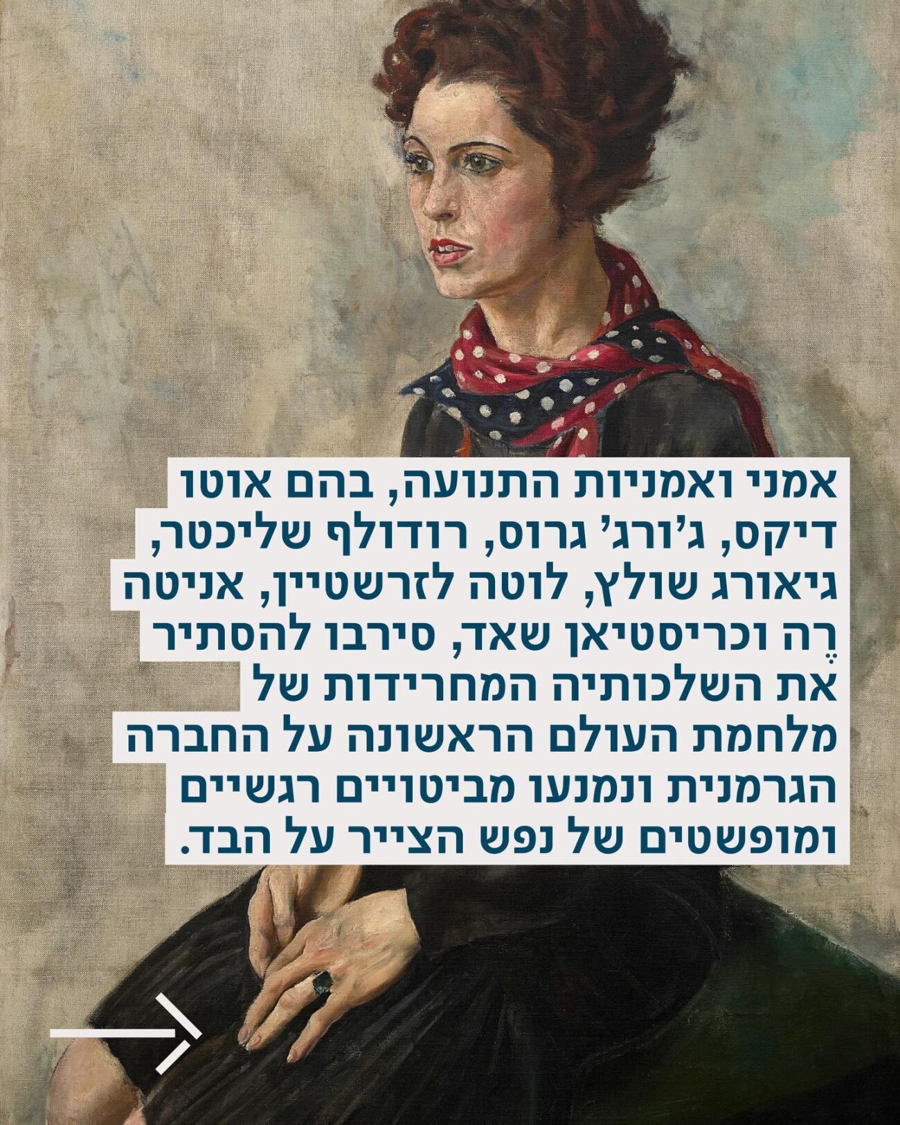 אמני תנועת ״האובייקטיביות החדשה”, שנולדה בגרמניה של שנות ה-20, סירבו להסתיר את השלכותיה המחרידות של מלחמת העולם הראשונה על החברה הגרמנית. אמנים אלו אימצו מבט חדש: חד, חודר ומפוקח, המבקש לשקף את המציאות כפי שהיא.
