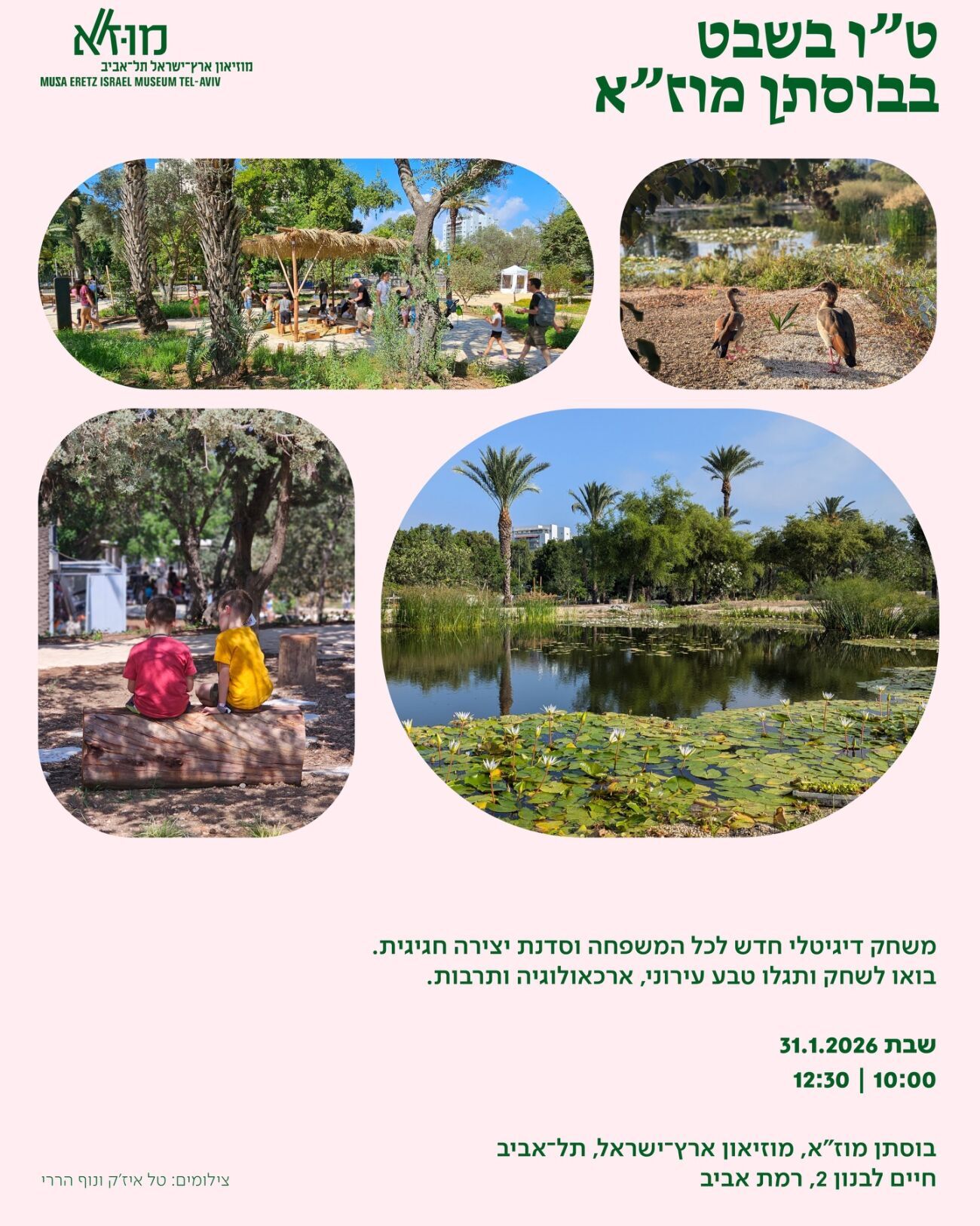 האירוע יתקיים בשבת הקרובה, ה-31.1, בשעה 10:30 בבוסתן מוז"א. לפרטים נוספים ורכישת כרטיסים ניתן לפנות לאתר האינטרנט של המוזיאון.
