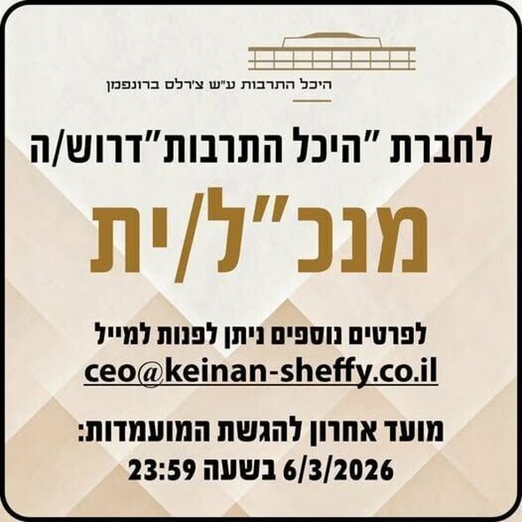 הזדמנות קריירה בתל אביב: היכל התרבות ע"ש צ'רלס ברונפמן מחפש מנכ"ל/ית