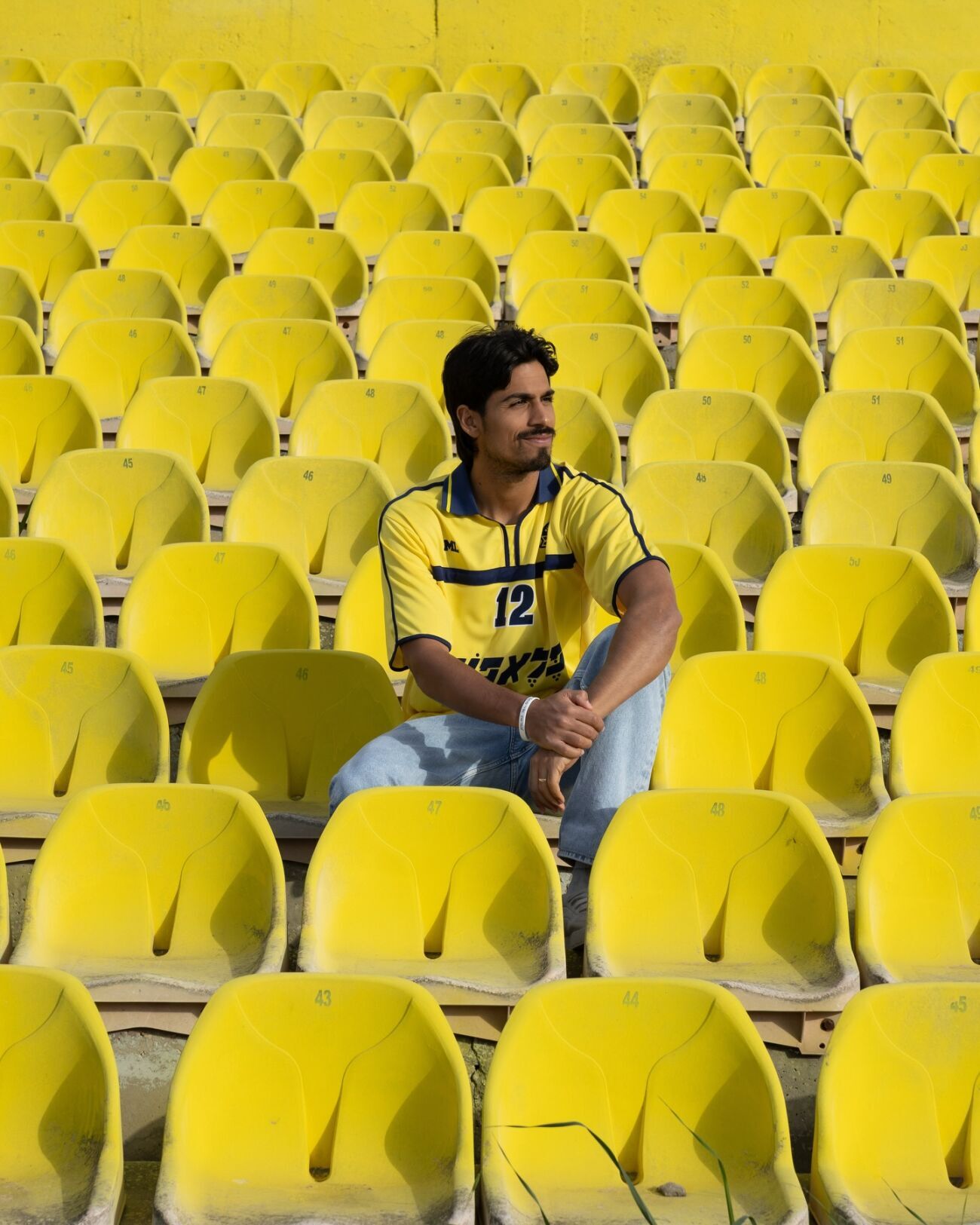בתמונות, אשר צולמו על רקע הכיסאות הצהובים ביציעי האצטדיון, ניתן לראות את השחקנים מדגמנים חולצת רטרו צהובה בעלת צווארון כחול. על חזית החולצה מתנוסס המספר 12, לצד הסמל של מועדון הכדורגל מכבי תל אביב, וכן הלוגו הקלאסי של חברת "פלאפון" המעוצב ברוח התקופה. פרסום התמונות לווה בכיתוב הקצר "הצהובה".