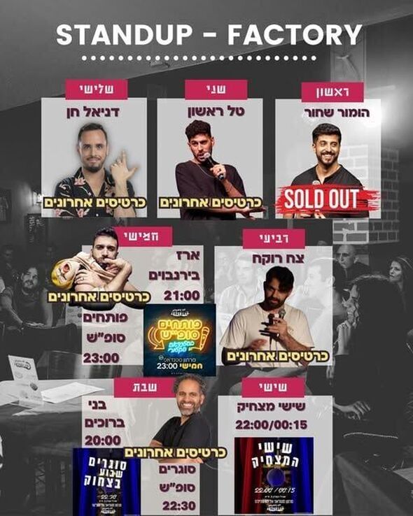 מועדון הסטנדאפ פקטורי בתל אביב מפרסם את לוח ההופעות לשבוע הקרוב, ומבטיח לקהל המבלים שבוע של הומור, פאנצ'ים ומופעים של מגוון סטנדאפיסטים.