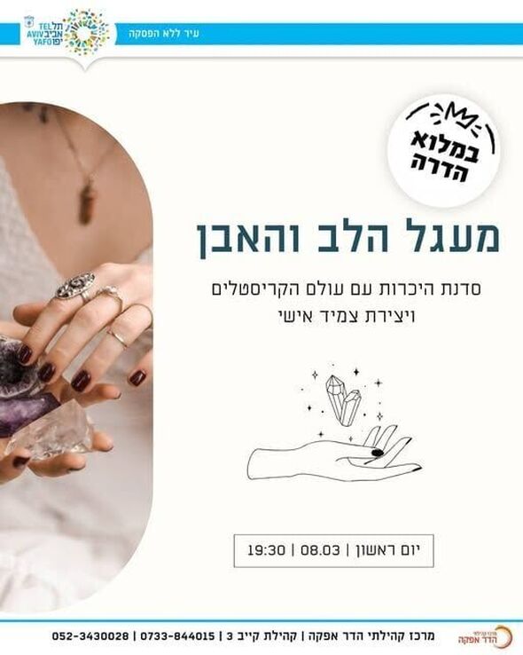 לרגל שבוע השוויון המגדרי בתל אביב: סדנת "מעגל הלב והאבן" להכרת קריסטלים במרכז קהילתי הדר אפקה (08.03.2026)