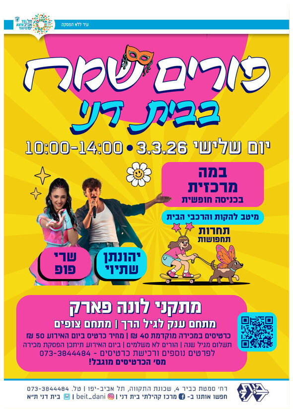 חגיגות פורים במרכז קהילתי בית דני בתל אביב: הופעות, מתקני לונה פארק ותחרות תחפושות ב-03.03.2026