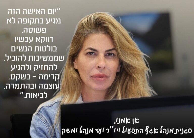 - אור נאמן, סגנית מנהל אגף התפעול ויו"ר ועד מנהל ומשק: "יום האישה הזה מגיע בתקופה לא פשוטה. דווקא עכשיו בולטות הנשים שממשיכות להוביל, להחזיק ולהניע קדימה - בשקט, בעוצמה ובהתמדה. לביאות."