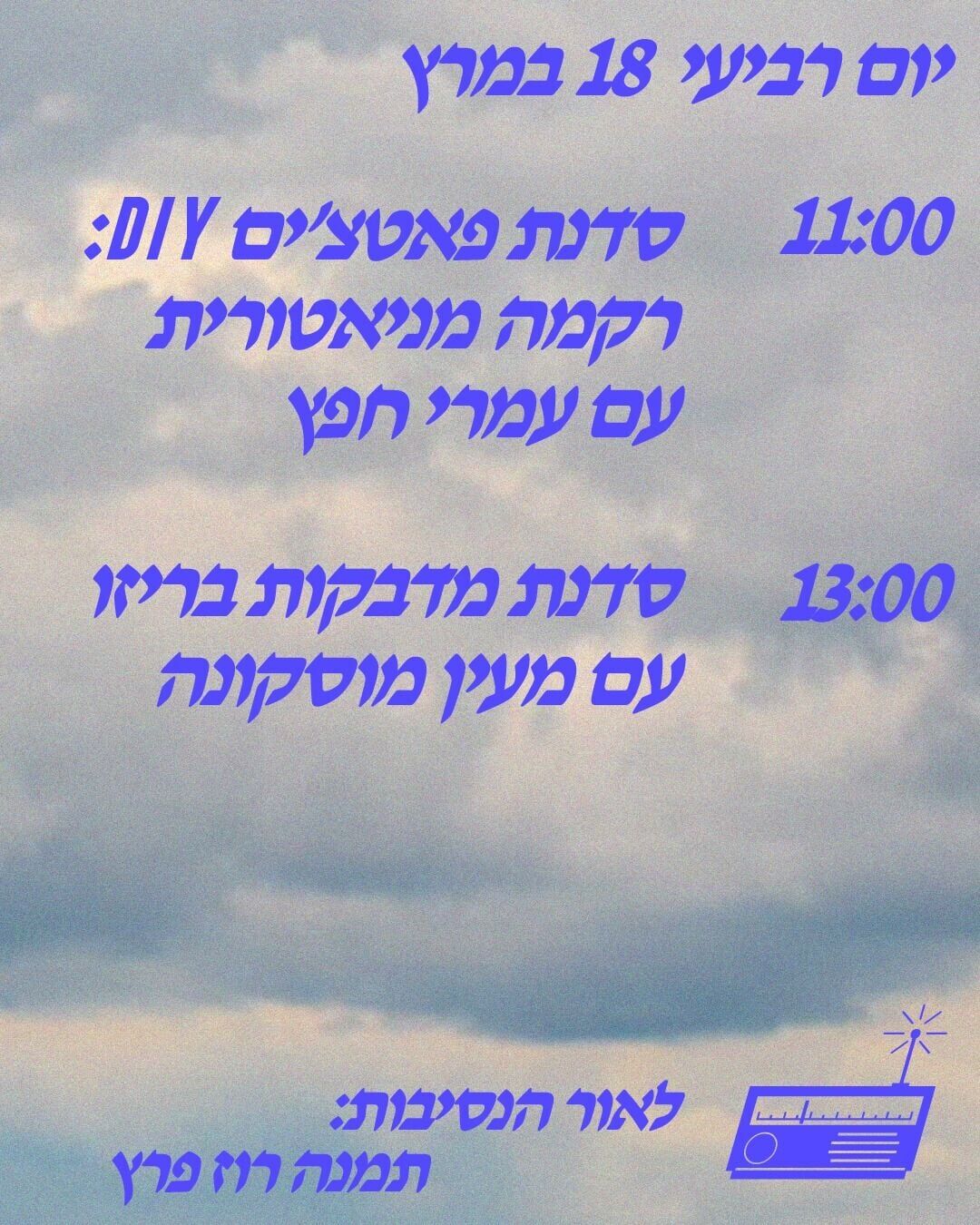 - 13:00 - סדנת מדבקות בריזו עם מעין מוסקונה.