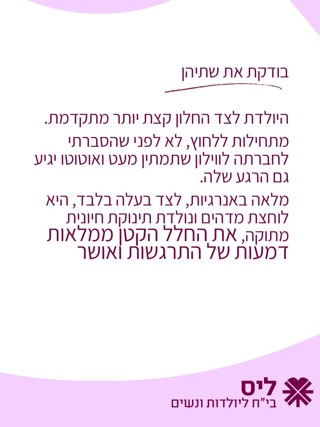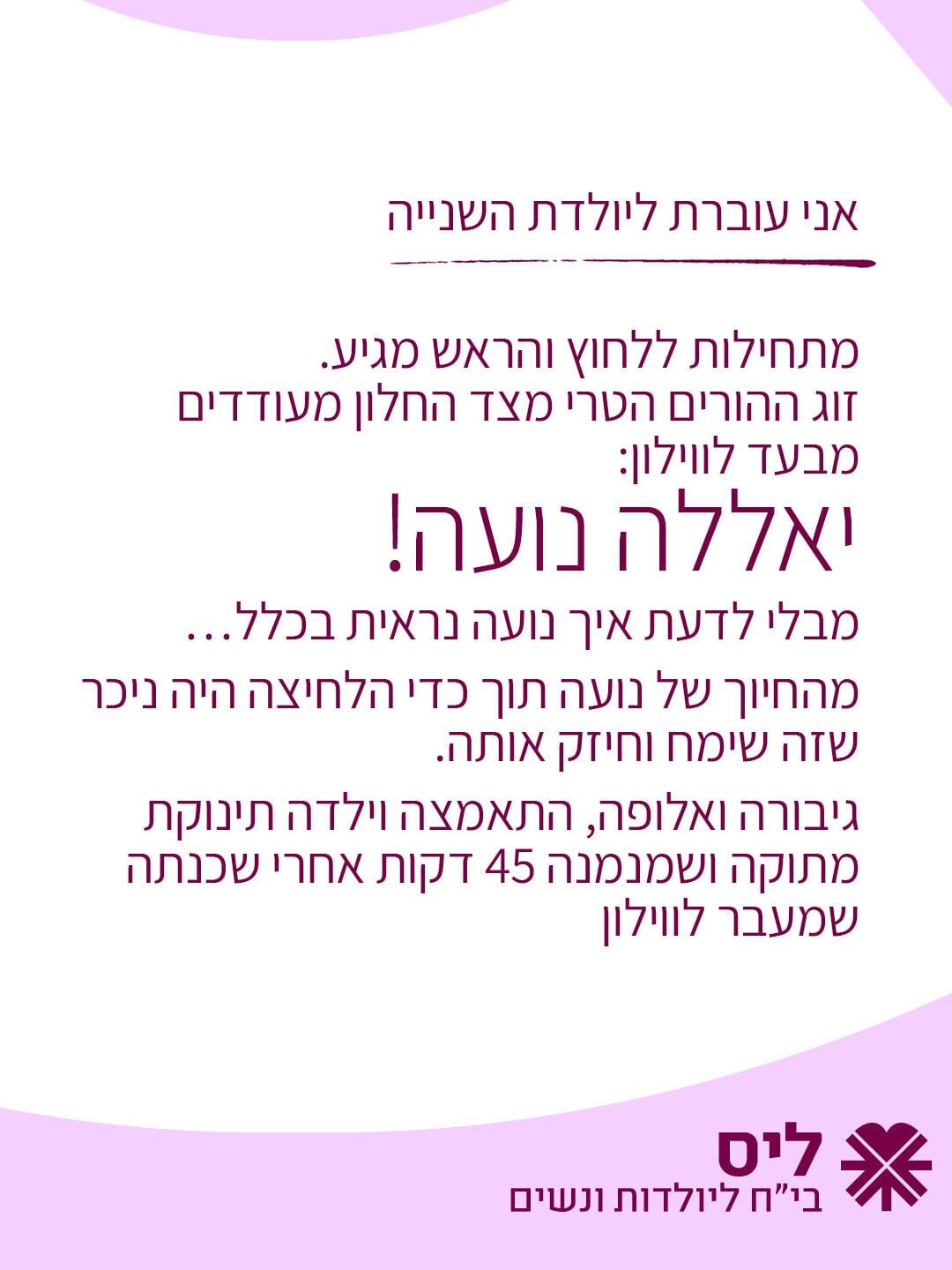 "יאללה נועה!": סיפור מרגש של סולידריות בין שתי יולדות בחדר לידה משותף בבית החולים ליס