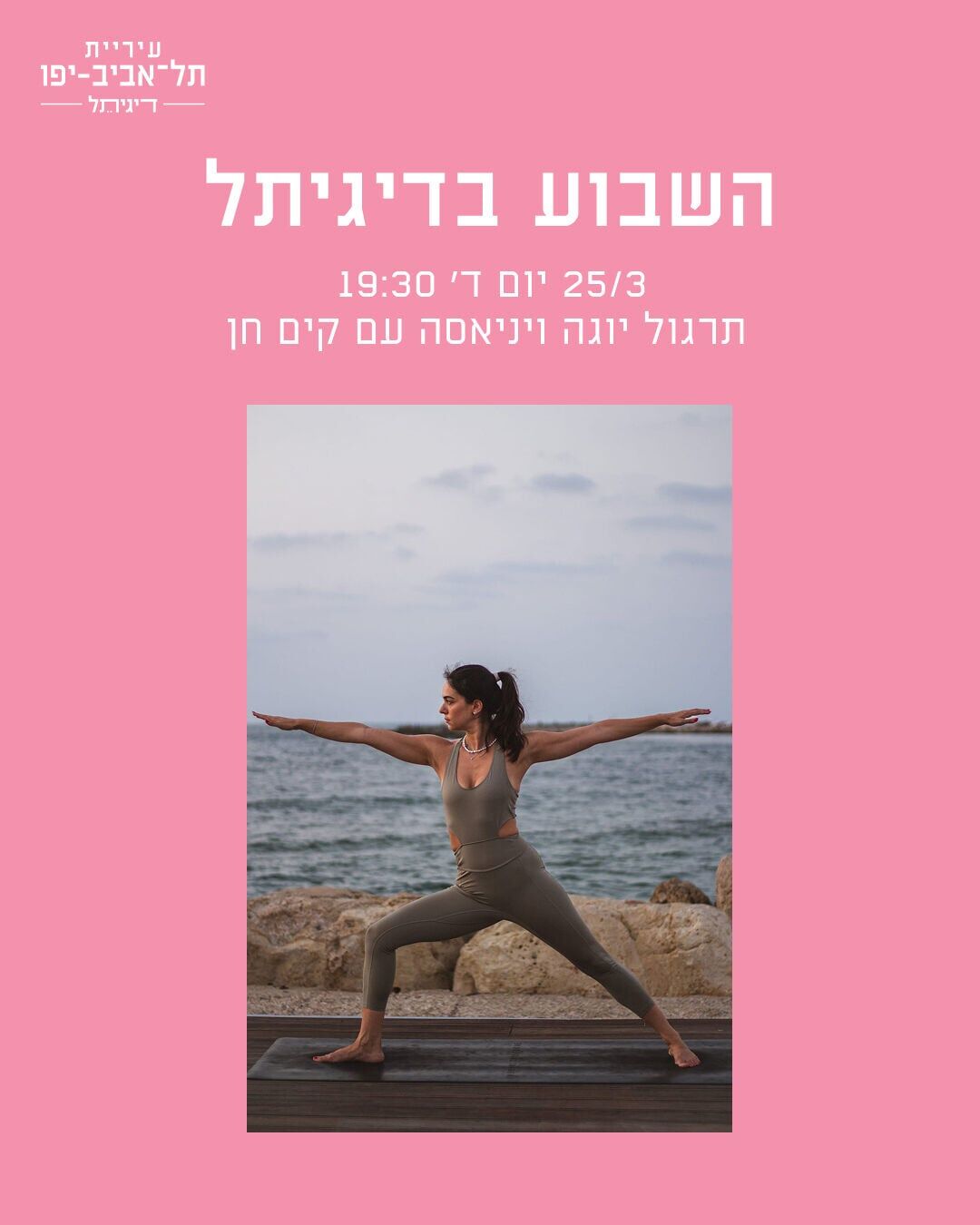 - תרגול יוגה ויניאסה: בהדרכת קים חן. יום רביעי, 25 במרץ בשעה 19:30. להרשמה.