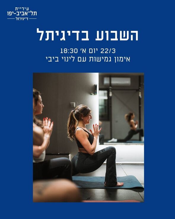 - אימון גמישות עם לינוי ביבי: יום ראשון, 22 במרץ בשעה 18:30. לקישור המפגש.