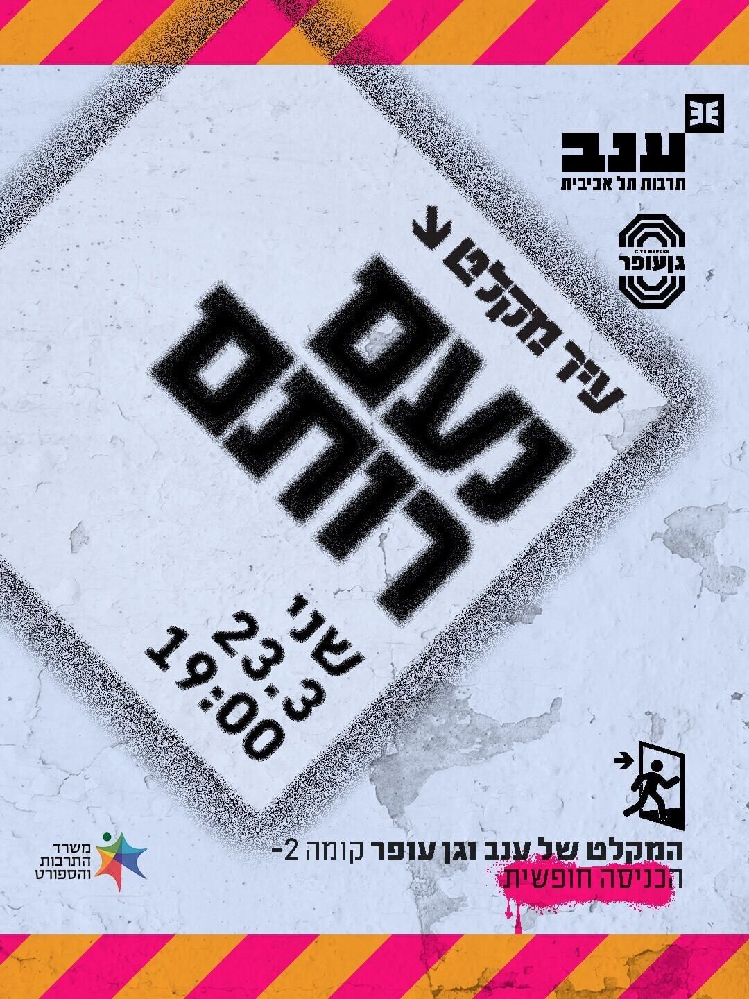 מרכז ענב לתרבות בתל אביב-יפו ממשיך גם השבוע בסדרת מופעי עיר מקלט. ההופעות יתקיימו במקלט של גן עופר ומרכז ענב, ויציעו לקהל לחזור ליהנות מתרבות חיה באווירה בטוחה ומוגנת. הכניסה לכלל המופעים הינה חופשית לחלוטין.