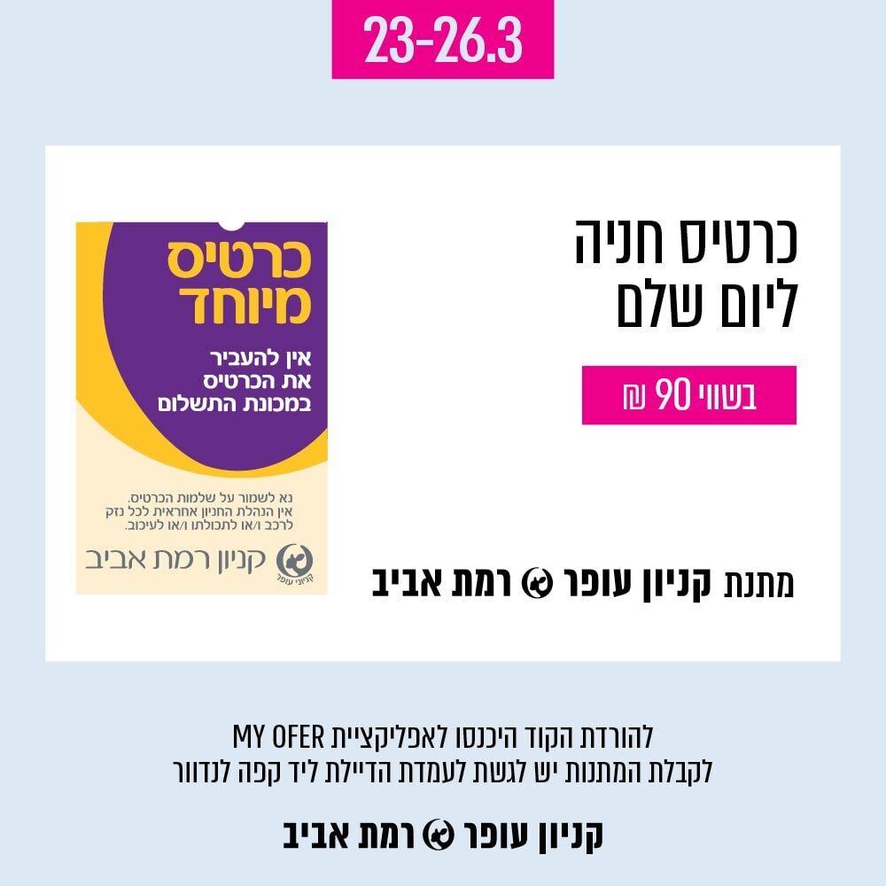 לפרטים נוספים אודות המבצע ותנאיו, ניתן להיכנס לקישור הבא: https://myofer.co.il/deals/2007975.
