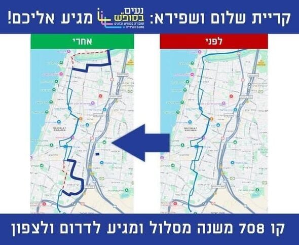 התרחבות ב"נעים בסופ"ש": קו 708 משנה מסלול וייכנס לראשונה לשכונות שפירא וקריית שלום בתל אביב