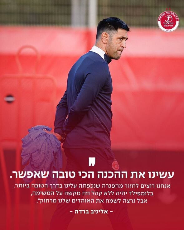 מאמן הקבוצה, אליניב ברדה, התייחס להכנות ואמר: "עשינו את ההכנה הכי טובה שאפשר. אנחנו רוצים לחזור מהפגרה שנכפתה עלינו בדרך הטובה ביותר. בלומפילד יהיה ללא קהל וזה מקשה על המשימה, אבל נרצה לשמח את האוהדים שלנו מרחוק".