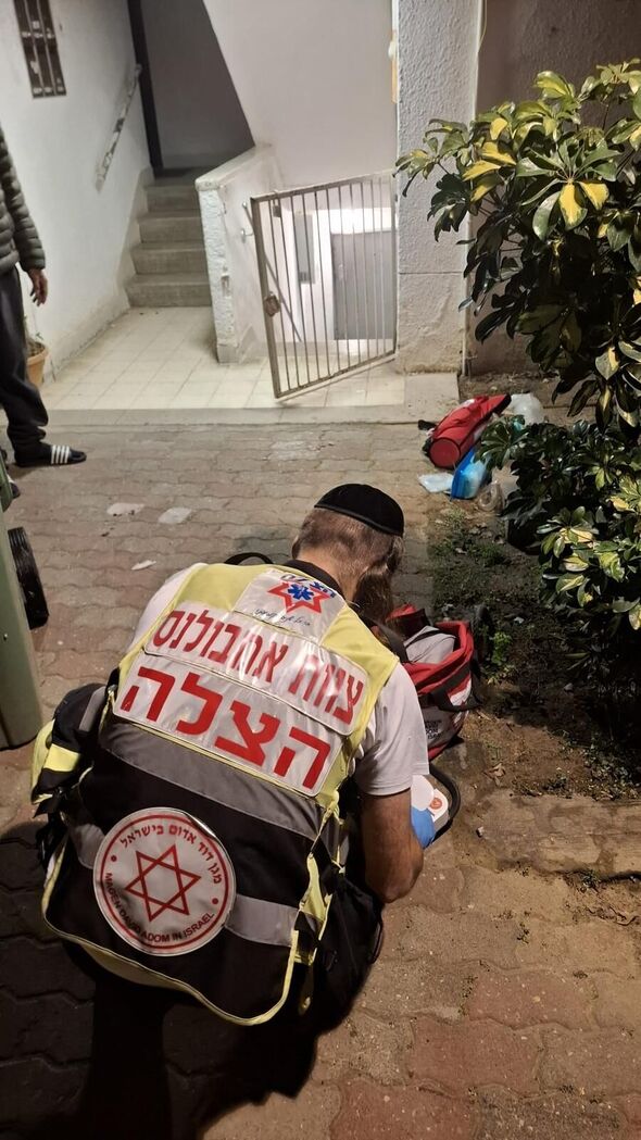 חובש ארגון הצלה, אלי ביטון, סיפר: "כשהגעתי למקום עם אמבולנס מד"א, מצאתי אישה בת 90 כשהיא מחוסרת הכרה עם חבלת ראש קשה לאחר שמעדה במהלך ריצה לממ"ד בזמן אזעקה. יחד עם חובשים ופראמדיקים של הצלה ומד"א, הענקנו לה טיפול רפואי ראשוני, הכולל קיבוע וחבישות, והיא פונתה במצב קשה להמשך קבלת טיפול רפואי במוסד הרפואי".