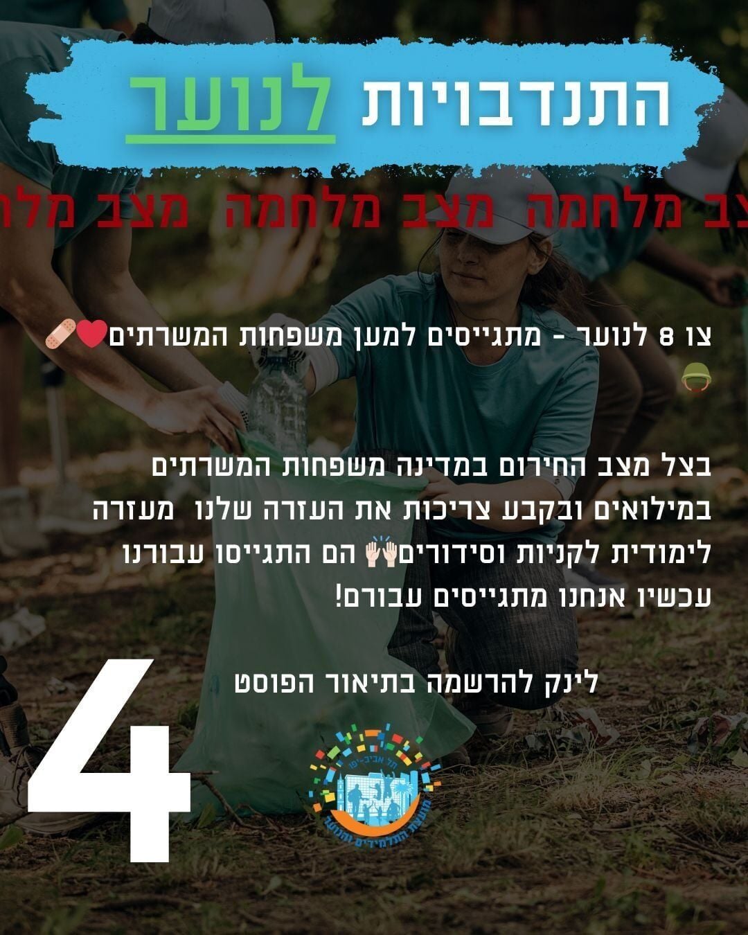 מיזם המתמקד בהתגייסות למען משפחותיהם של משרתי המילואים וצבא הקבע. בצל מצב החירום במדינה, משפחות אלו זקוקות לסיוע, ובני הנוער מתגייסים למענן ועוזרים במגוון תחומים – החל מעזרה לימודית ועד לעריכת קניות וסידורים שונים. ההרשמה למיזם פתוחה לבני הנוער המעוניינים לתרום את חלקם.