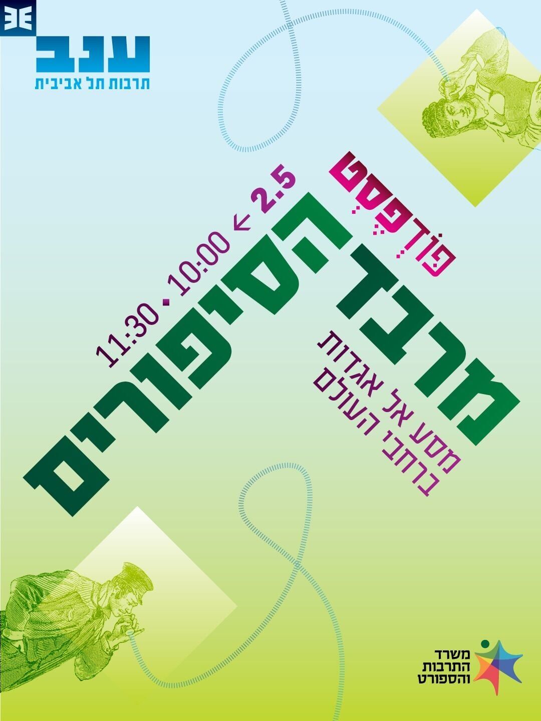- 2 במאי: "מרבד הסיפורים - מסע אל אגדות ברחבי העולם". יתקיימו שני מחזורים בשעות 10:00 ו-11:30.
