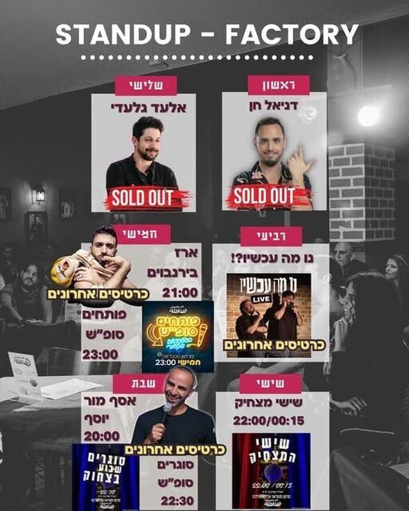 לוח הופעות שבועי בסטנדאפ פקטורי תל אביב: אלו המופעים שמחכים לכם החל מה-12 באפריל