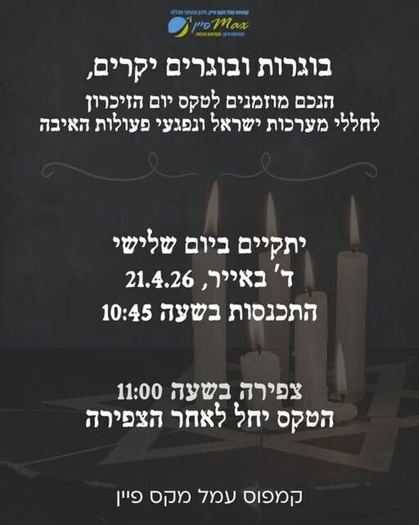 קמפוס עמל "מקס פיין" בתל אביב מזמין את בוגריו לטקס יום הזיכרון שייערך ב-21.4.26