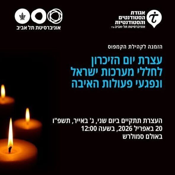 עצרת יום הזיכרון באוניברסיטת תל-אביב תתקיים ב-20 באפריל